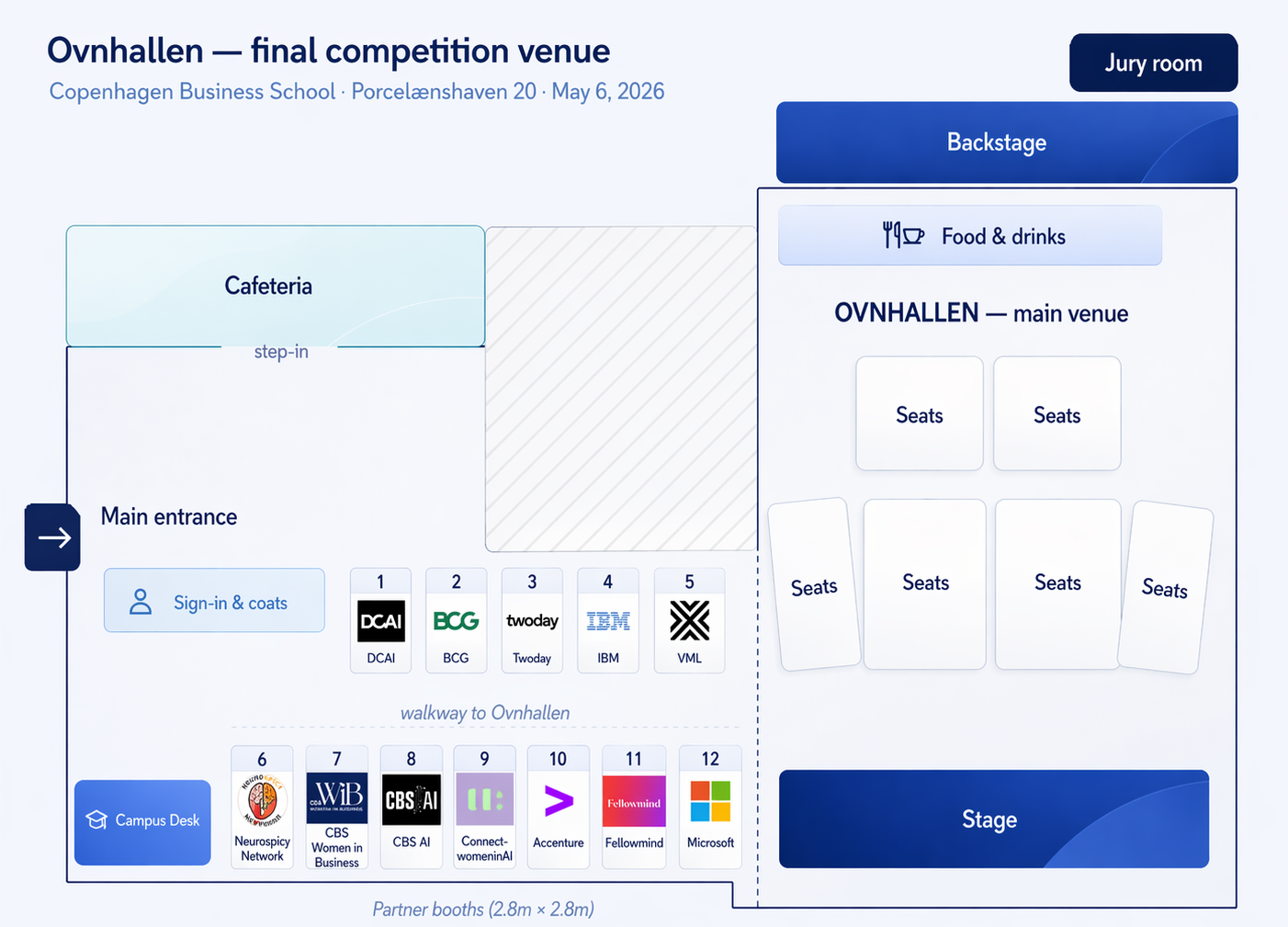 The final event of CBS AI Academy 2026. CBS students present the AI solutions they built across four applied workshops — through live pitches and demos evaluated by an industry jury. Plus keynotes, a panel, and 10+ industry partners on the expo floor.